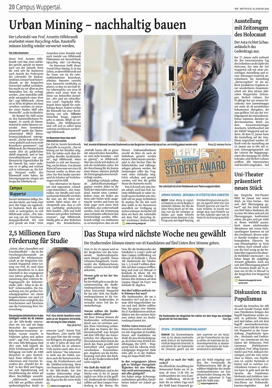 Die WZ berichtet über die Forschungsinnovative von Prof. Annette Hillebrandt in ihrem Lehrstuhl an der Bergischen Universität Wuppertal. Neben der Erarbeitung einer großen Publikation wird auch der neu initiierte studentische Wettbewerb geteasert.